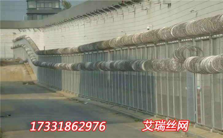 監(jiān)獄鋼網(wǎng)墻是一種新型防護網(wǎng),由銳利尖角鍍鋅鋼板或不銹鋼薄板做刀片,鋼絲做芯線組合而成的防護器材. 監(jiān)獄鋼網(wǎng)墻刀片刺網(wǎng)具有嚇阻、防翻越等效果,材質堅硬,高強度,高張力,造型設計獨特,不宜觸摸,因而能達到極好的防護隔離效果.