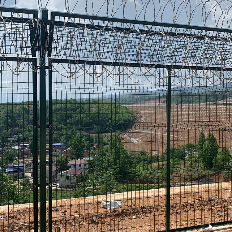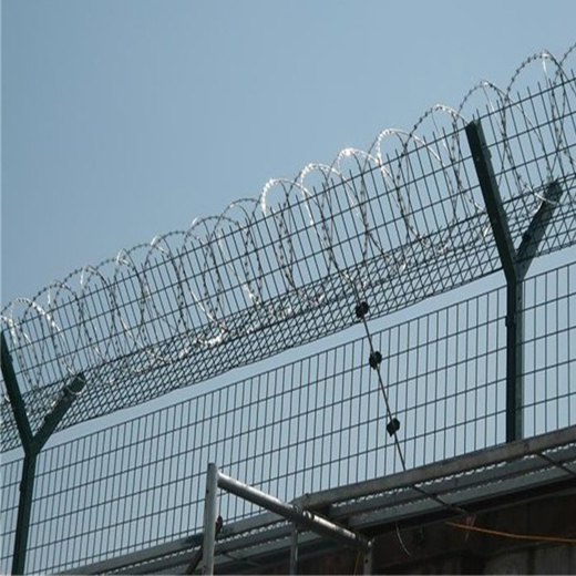 機(jī)場(chǎng)圍欄網(wǎng)由安全防盜連接件和熱鍍鋅刀片刺籠組成,是具有高強(qiáng)度和安全防御級(jí)別的隔離柵產(chǎn)品。近年來(lái),機(jī)場(chǎng)圍欄網(wǎng)已被廠泛應(yīng)用于機(jī)場(chǎng)、軍事基地等高安全場(chǎng)所。在機(jī)場(chǎng)圍欄網(wǎng)的頂部加裝刀片刺絲、刀片刺繩,可有效增強(qiáng)安全防護(hù)性能。原料材質(zhì):采用國(guó)標(biāo)Q195低碳鋼冷拔絲、管等。