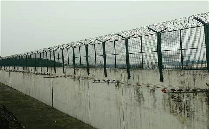 監(jiān)獄護(hù)欄網(wǎng)又稱作"Y型安全防御護(hù)網(wǎng)"和機(jī)場護(hù)欄網(wǎng)通用,是由V型支架立柱,加強(qiáng)型焊接片網(wǎng),安全防盜連接件和熱鍍鋅刀片刺籠組成強(qiáng)度和安全防御性級別很高。近年來,被廣泛應(yīng)用在監(jiān)獄,軍事基地等高安全場所。注:如果在監(jiān)獄護(hù)欄網(wǎng)頂部加裝刀片刺絲、刀片刺繩后又很好的增強(qiáng)了安全防護(hù)性能。采用電鍍、熱鍍、噴塑、浸塑等防腐形式,具有很好的抗老化、抗曬、耐候等特點(diǎn)。其產(chǎn)品造型美觀、花色多樣,既起到圍欄作用,又起到美化作用。由于具有安全性高、防攀爬能力好,網(wǎng)片連接方式采用特制SBS緊扣件,有效防止人為的破壞性拆卸,橫向四道折彎加強(qiáng)筋,使網(wǎng)面強(qiáng)度顯著增加。