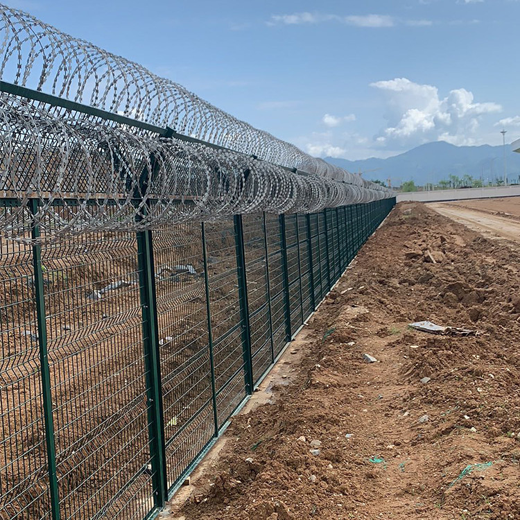 工程案例通用機(jī)場護(hù)欄-下層直網(wǎng)片:網(wǎng)絲材質(zhì):冷拔低碳鋼絲焊接而成、網(wǎng)絲直徑4.0mm、網(wǎng)格5*10cm、表面處理浸塑(浸塑厚度0.8-0.9mm)、網(wǎng)高1.9米網(wǎng)寬3米(柱中心距離)。
