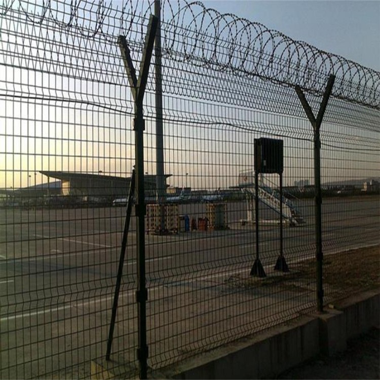 工程案例機(jī)場(chǎng)是一個(gè)對(duì)安全性要求高的場(chǎng)所,所以防護(hù)欄對(duì)于機(jī)場(chǎng)而言就是牢固的外墻。機(jī)場(chǎng)鋼筋網(wǎng)圍界又稱(chēng)作“Y型安全防御護(hù)網(wǎng)”,是由折彎網(wǎng)片,V型支架立柱,加強(qiáng)型焊接片網(wǎng),上面有刀片刺繩(又稱(chēng)刀片網(wǎng),刀片護(hù)欄)安全防盜連接件組成強(qiáng)度和安全防御性級(jí)別很高。被廣泛應(yīng)用在機(jī)場(chǎng),基地等安全場(chǎng)所。