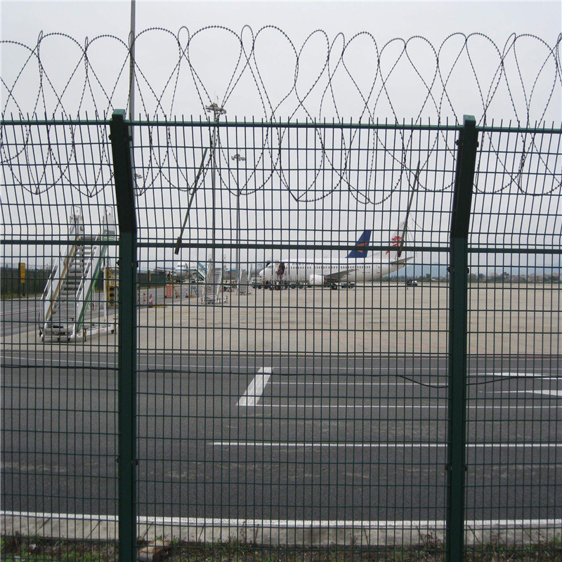 工程案例機(jī)場圍界是由Y型立柱、加強(qiáng)型焊接網(wǎng)片、安全防盜連接件和熱鍍鋅刀刺滾籠組成安全防御性級(jí)別很高的隔離網(wǎng)產(chǎn)品。機(jī)場圍界表面采用電鍍、熱鍍、噴塑或浸塑等防腐形式,具有良好的抗腐蝕、抗曬、抗老化的優(yōu)點(diǎn)。其造型美觀,既安全作用又有美觀作用。被廣泛應(yīng)用在機(jī)場、監(jiān)獄、軍事基地等高安全場所。