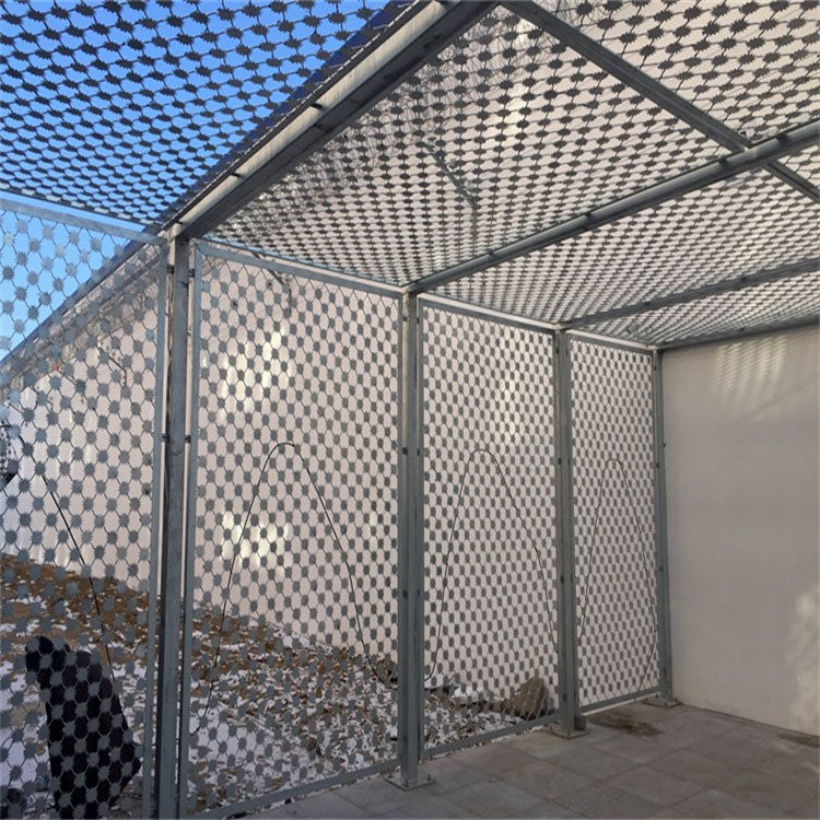 監(jiān)獄放風場隔離網、 監(jiān)獄防御隔離網、 防攀爬隔離網、監(jiān)獄刀片刺網隔離網主要用于園林公寓、機關單位、監(jiān)獄、哨所、邊防等的圈禁防護。刀刺隔離網由銳利尖角鍍鋅鋼板或不銹鋼薄板做刀片,高張力鋼絲做芯線組合而成的阻絕器材。由于刀片刺繩隔離網造形獨特不易觸摸,因而能達到很好的防護隔離效果。直線形刀片刺網由刀片型直線刺網交叉焊接成型,可用于防盜窗、高速護欄、隔離柵。施工迅速、效果顯著。刀刺隔離網,有多種架設方式可供選擇,施工迅速,既省經費,又可達到安全隔離網效果。