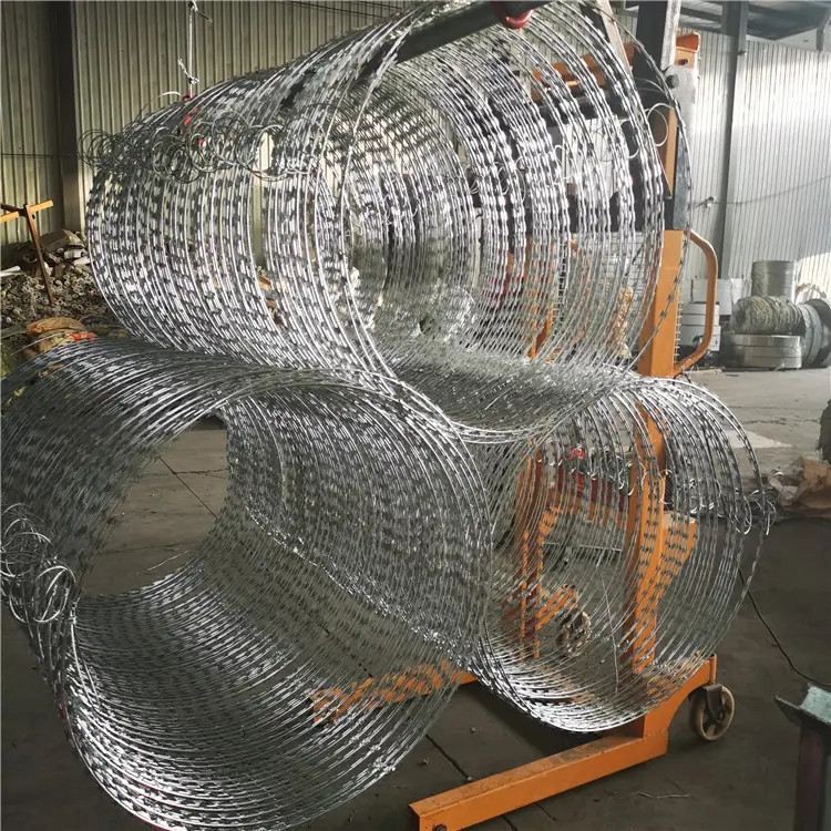 工程案例我們平時見到的金屬隔離網(wǎng)頂部都會加裝蛇腹形刀刺網(wǎng),這個設(shè)計主要是在隔離網(wǎng)一層防攀爬效果的基礎(chǔ)上面,再多一道‘安全墻’,這種刀刺網(wǎng)都是利用鋼板沖出刀片來,用專制卡扣固定在一起。兩個圈用卡扣固定,這樣拉伸開才是連貫一圈一圈固定在一起。也可以拉直焊接成網(wǎng)片使用,尺寸:長度和寬度可以根據(jù)客戶需求進行制作,一般常見的長度為2-3米,寬度為1.5米-2.5米??梢愿鶕?jù)不同的用途搭配立柱合邊框進行自由組合。網(wǎng)孔可設(shè)計菱形或者方形,材質(zhì)常見的有不銹鋼、熱鍍鋅等,不同的材質(zhì)可根據(jù)環(huán)境和使用條件選擇。焊接刀片護欄網(wǎng)作為一種高效的防護設(shè)施,其產(chǎn)品規(guī)格和結(jié)構(gòu)特點的不同組合可以滿足不同的使用需求,適用于工廠、學(xué)校、軍事基地、機場、大型活動場地等各種需要防護的場所,是一種重要的安全配置。