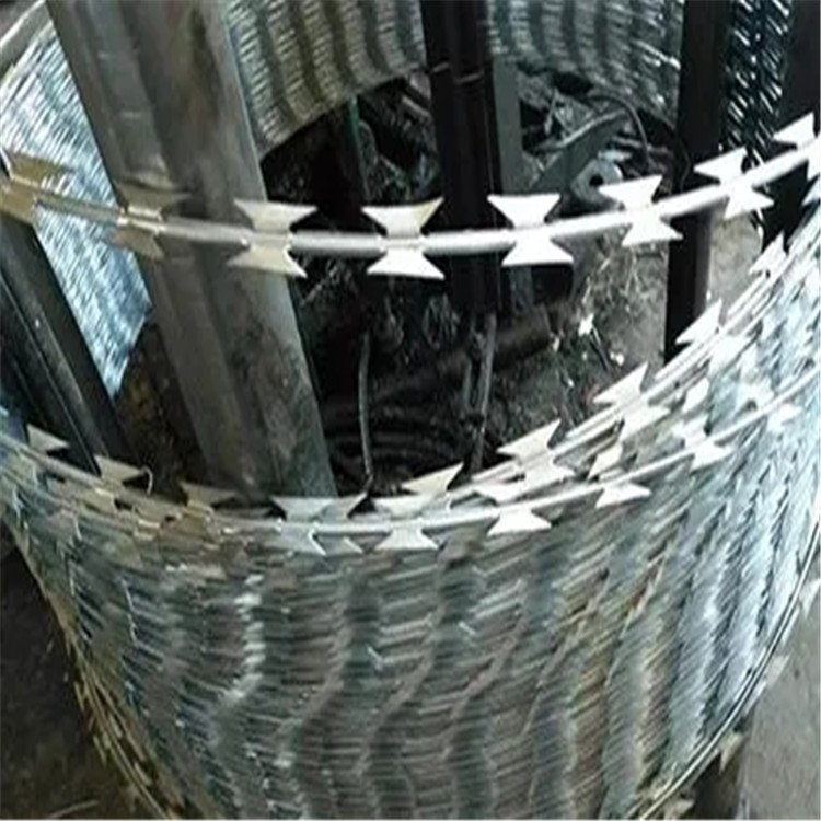 新聞動態(tài)刀刺網(wǎng)是一種近年發(fā)展起來的防護(hù)、隔離能力較強(qiáng)的新型防護(hù)網(wǎng)產(chǎn)品。它采用鋼板沖壓成型包附于熱鍍鋅鋼絲之上,由鍍鋅鋼板或不銹鋼薄板做刀片,高張力鋼絲做芯線組合而成的。鋒利的刀型刺由雙線扣裝后成蛇腹?fàn)睿让烙^又讓人不寒而栗,起到了很好的阻嚇作用。