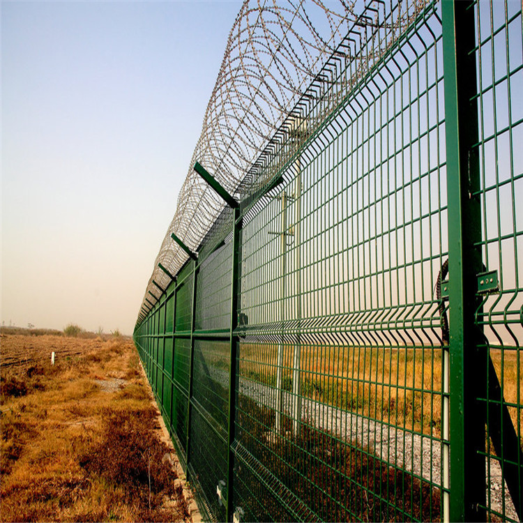 很多客戶都會(huì)問(wèn)為什么監(jiān)獄隔離網(wǎng)機(jī)場(chǎng)圍界都使用Y型金屬隔離網(wǎng)呢?今天咱們來(lái)分析下原因。Y型金屬隔離網(wǎng)的邊框網(wǎng)結(jié)構(gòu)能夠提供更高的安全性,主要目的是為了防止外界人員的非法進(jìn)入。產(chǎn)品采用高強(qiáng)度低碳鋼絲強(qiáng)力焊接,Y型立柱及高強(qiáng)度邊框,頂部加焊V型支架,大大增強(qiáng)了圍網(wǎng)的抗沖擊力,再增加刀片刀刺絲后又很快的增強(qiáng)了安全防護(hù)性能。邊框網(wǎng)結(jié)構(gòu)能夠提供更堅(jiān)固的支撐和更牢固的連接,使得整個(gè)隔離網(wǎng)更加穩(wěn)固,難以被破壞。邊框網(wǎng)的結(jié)構(gòu)能夠有效地防止通過(guò)撞擊、破壞或攀爬等方式逃脫,這種架構(gòu)形式能提供更好的視野和通風(fēng)效果。邊框網(wǎng)結(jié)構(gòu)相對(duì)于其他形式的隔離網(wǎng),具有更大的網(wǎng)眼和更少的遮擋物,能夠提供更好的視野和通風(fēng)效果,使得環(huán)境更加明亮和通風(fēng),邊框網(wǎng)結(jié)構(gòu)也便于安裝和維護(hù)。