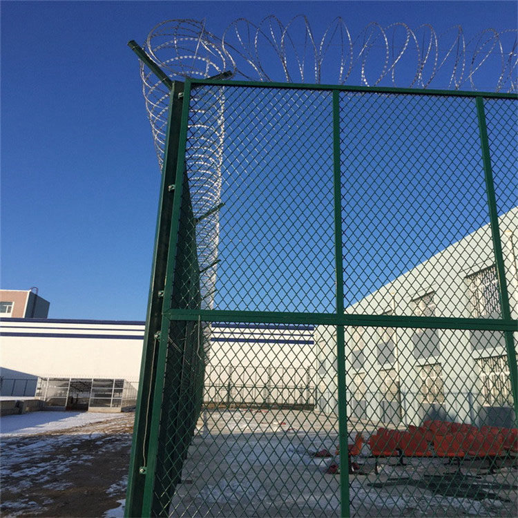 3.結(jié)構(gòu):隔離網(wǎng)的結(jié)構(gòu)應(yīng)簡單、堅(jiān)固,方便施工和維修。建議采用突出型排列,這樣可以提高囚犯從外面攀爬的難度同時(shí),需要考慮隔離網(wǎng)與地面的連接,確保固定穩(wěn)固。網(wǎng)墻設(shè)計(jì)建設(shè)應(yīng)美觀、實(shí)用;蛇腹形刀刺網(wǎng)刀片鋒銳防銹,外形有直接的震懾作用。應(yīng)具備抗剪切、防攀爬功能,防腐抗銹功能。隔離網(wǎng)的顏色應(yīng)與周圍環(huán)境協(xié)調(diào),一般采用墨綠色。