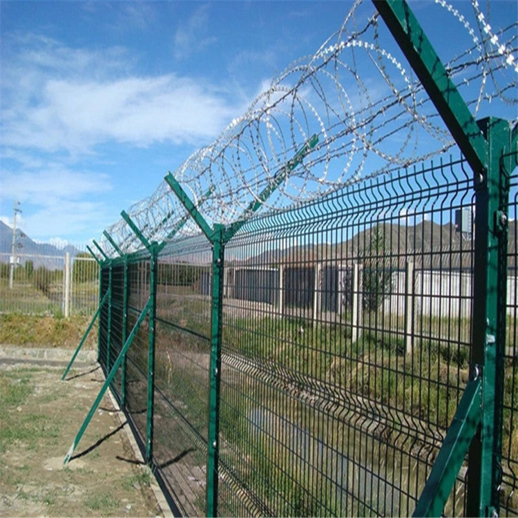 新聞動態(tài)Y型安全防御護(hù)網(wǎng)可用作監(jiān)獄鋼網(wǎng)墻也可用作機(jī)場圍界,是由V型支架立柱加強(qiáng)型焊接片網(wǎng),安全防盜連接件和熱鍍鋅刀片刺網(wǎng)組成強(qiáng)度和安全防御性級別很高。被廣泛應(yīng)用在監(jiān)獄,軍事基地等高安全場所。立柱為60X60的矩形鋼,頂端焊有V型之架,或者采用70mmX100mm的掛式連接立柱。立柱高度2.5米成Y字型,在2米高的網(wǎng)片上邊架上直徑50cm或60cm的刀刺網(wǎng),整體下來高度2.5米,是無法攀爬或翻越的,在孔徑選擇上邊一般5cmx10cm的就可以了。