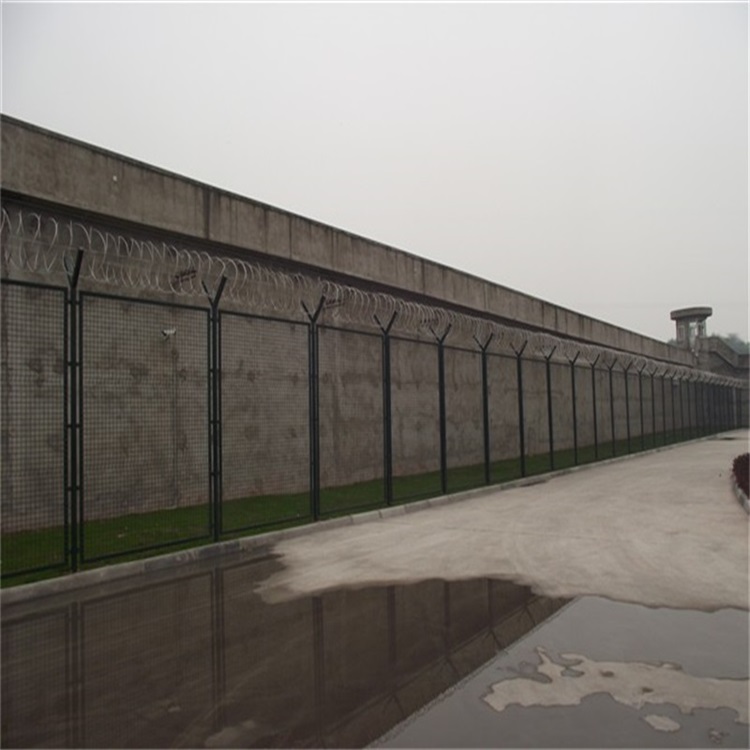 近年來,被廣泛應(yīng)用在監(jiān)獄,軍事基地等高安全場(chǎng)所。注:如果在監(jiān)獄護(hù)欄網(wǎng)頂部加裝刀片刺絲、刀片刺繩后又很好的增強(qiáng)了安全防護(hù)性能。