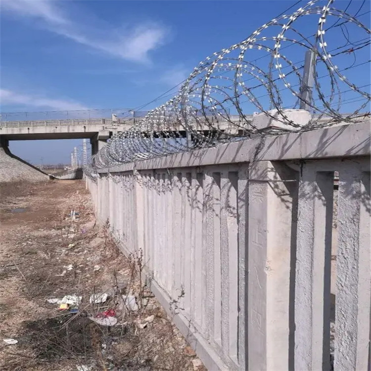 工程案例鐵路刺絲滾籠主要包括刀片剌網(wǎng),刺繩,和支架等.安裝好后具有很好的阻嚇效果,與能起到相同作用的產(chǎn)品比起來(lái)性價(jià)比是高很多的.主要制作工藝就是由熱鍍鋅鋼板或者不銹鋼鋼板沖壓出尖銳的刀片,然后由高張力鍍鋅鋼絲或者不銹鋼絲來(lái)做芯線組合構(gòu)成的防護(hù)產(chǎn)品。刀片刺繩由沖切鋼板采用機(jī)械壓軋?jiān)阡摻z上成型,刀刺寬度22mm,兩刃垂直間距15mm,刀刺縱向間距34mm,芯絲直徑為2.5mm。刀片采用厚度0.5mm的Q195鋼板沖切制作,芯絲由HPB300?6.5mm高線鋼絲加工。