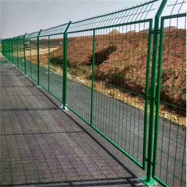 工程案例高速公路隔離柵立柱采用φ48X1.5mm焊接鋼管,高度1.8m,間距為3m,網(wǎng)片由冷拉鋼絲點焊后浸塑而成,立柱均應(yīng)加蓋柱帽,顏色采用果綠色,色號可采用6012或6010。