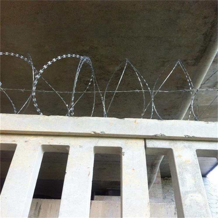 刺絲滾籠主要包括刀片剌網(wǎng),刺繩,和支架等.安裝好后具有很好的阻嚇效果,與能起到相同作用的產(chǎn)品比起來性價(jià)比是高很多的.主要制作工藝就是由熱鍍鋅鋼板或者不銹鋼鋼板沖壓出尖銳的刀片,然后由高張力鍍鋅鋼絲或者不銹鋼絲來做芯線組合構(gòu)成的防護(hù)產(chǎn)品。