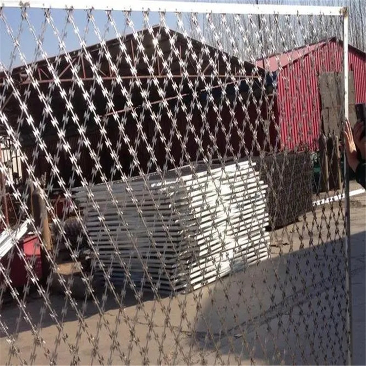 刀刺網(wǎng)是一種近年發(fā)展起來的防護、隔離能力較強的新型防護網(wǎng)產(chǎn)品。刀刺網(wǎng)它采用鋼板沖壓成型包附于熱鍍鋅鋼絲之上,由鍍鋅鋼板或不銹鋼薄板做刀片,高張力鋼絲做芯線組合而成的。鋒利的刀型刺由雙線扣裝后成蛇腹狀,既美觀又讓人不寒而栗。起到了很好的阻嚇作用。