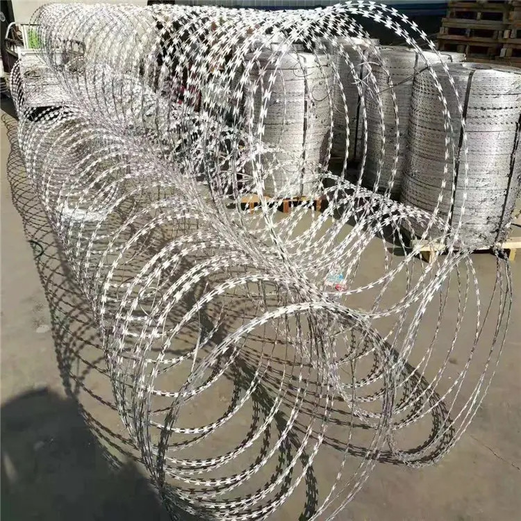 新聞動態(tài)蛇腹式刀刺網(wǎng)( 也叫螺旋式刀刺網(wǎng)),我們簡稱刀刺網(wǎng)。常用材質(zhì):熱鍍鋅,不銹鋼304。目前我國的絕大部分監(jiān)獄已經(jīng)淘汰了熱鍍鋅刀刺網(wǎng),選用不銹鋼304材質(zhì),解除了兩年一銹一年一換的后顧之憂,高鐵上面用的刀片刺繩用的是直徑500毫米的,拉開間距為20公分,表面進(jìn)行熱鍍鋅處理,一般環(huán)境用120克上鋅量,特殊環(huán)境用鍍鋅量270g的。