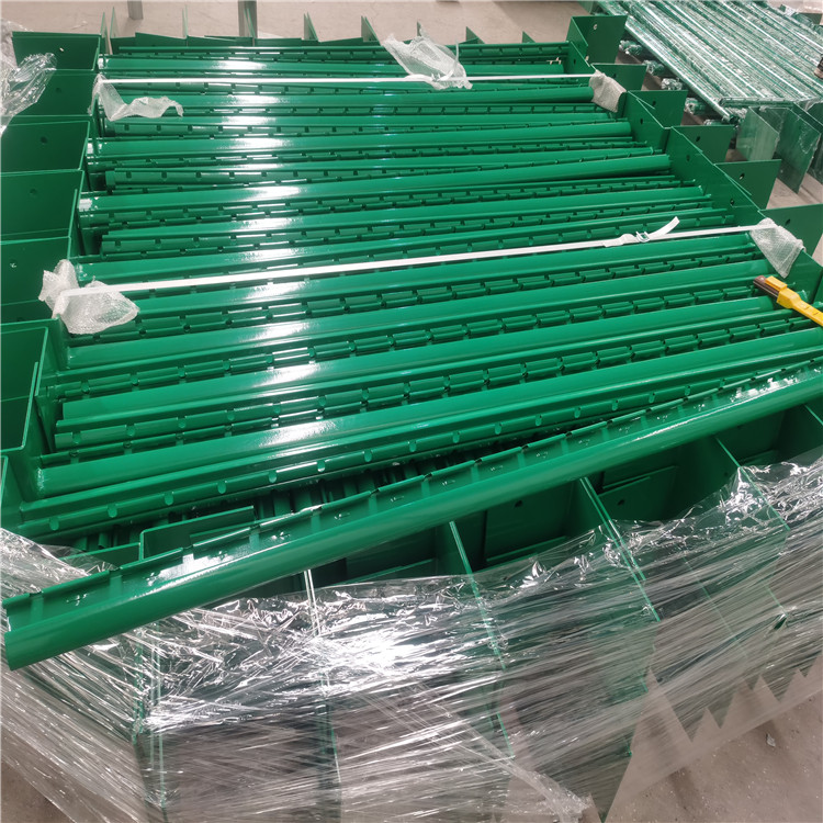 桃型柱護(hù)欄網(wǎng)網(wǎng)片絲徑3.5-6mm 網(wǎng)孔多為長方形:常用7.5*15cm 網(wǎng)片高度1.8m-2.5m,長度多為3m,立柱尺寸:常用5cm*7cm 7cm*10cm 厚度1mm ,表面多浸塑處理,顏色多選,更顯美觀。其筒形柱體、連接筋和左、右向鉤板為一體的板材彎制成型,且板材的兩側(cè)面有若干凹口構(gòu)成鉤板間的缺口。筒狀柱體截面呈類半橢圓狀,筒狀柱體截面呈矩形狀或三角狀,鉤板為多個,且沿柱體的縱向,以與網(wǎng)格孔相配合的間隙分布,鉤板間的缺口為“U”形,鉤板間的缺口為三角形狀或矩形狀。產(chǎn)品安裝時無需特殊配件,采用推進(jìn)式安裝方式,易于撐握,簡便快捷,降低成本。網(wǎng)片通常都加上三道V型折彎加強(qiáng)壓槽,有效的增加了網(wǎng)片的整體強(qiáng)度,加強(qiáng)彎具有較高的剛度和美學(xué)吸引力。立柱由高熱鍍鋅板帶輥壓而成,做工精良細(xì)膩,樣式新穎、獨特,立柱頂端的防雨帽與立柱的銜接處采用防拆卸設(shè)計,這一設(shè)計特征堪稱桃型柱圍欄系列產(chǎn)品中的創(chuàng)意之作,保證了桃型柱圍欄網(wǎng)更高的安全性。