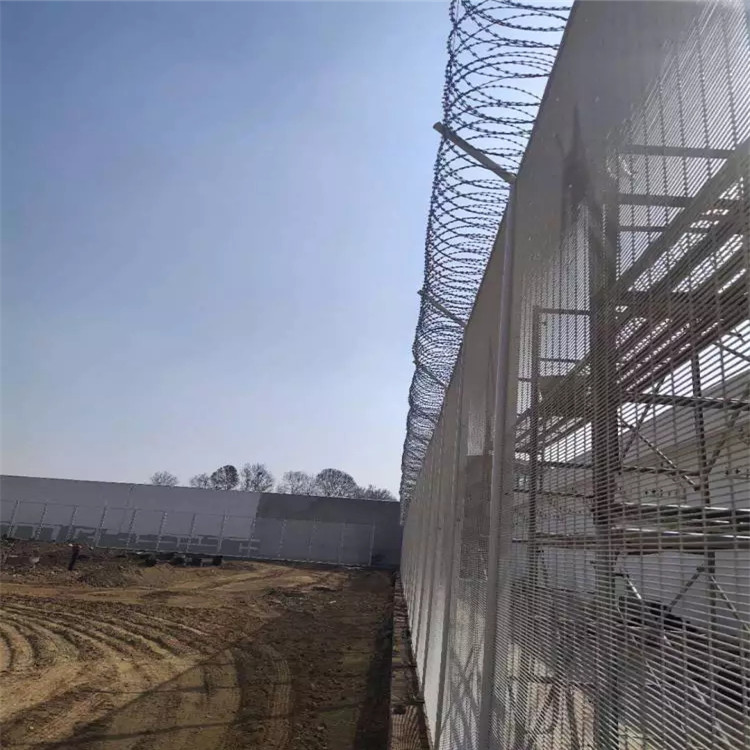 其次,監(jiān)獄隔離網(wǎng)必須搭配螺旋刀刺網(wǎng)使用來增加防護等級,防止犯人越獄,保證社會安全。隔離網(wǎng)安裝高度一般在5米高左右,內(nèi)外兩層,兩層之間可加刀片刺繩,防止攀爬逃脫。在圍墻頂部必須安裝刀片刺繩,刀片刺繩的加裝對監(jiān)獄的保護起到了很大的作用。另外監(jiān)獄的通道都安裝了電子控制安全保護,在門口,尤其是外側(cè)都需要安裝監(jiān)獄金屬刀刺隔離網(wǎng),以便在有沖卡情況下進行有效的攔截。