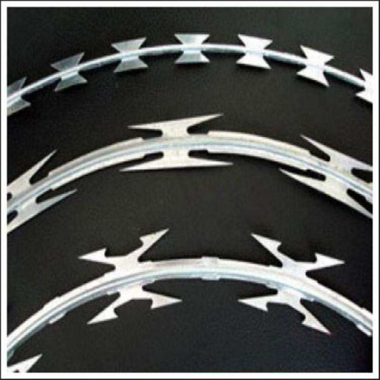 螺旋型交叉式刀片刺網(wǎng)系在兩條刀片刺網(wǎng)之間以不銹鋼片和鍍鋅鋼片強(qiáng)力夾和,展開后即成交叉狀,取其美觀又實用。