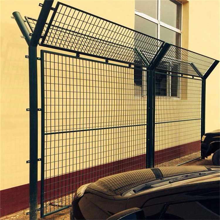 監(jiān)獄隔離網(wǎng)立柱的頂部焊接V型彎頭,這種立柱也叫做Y型立柱,頂部用以架設(shè)蛇腹形刀刺網(wǎng),與下部的監(jiān)獄隔離網(wǎng)完美結(jié)合,形成一道難以逾越的銅墻鐵壁。