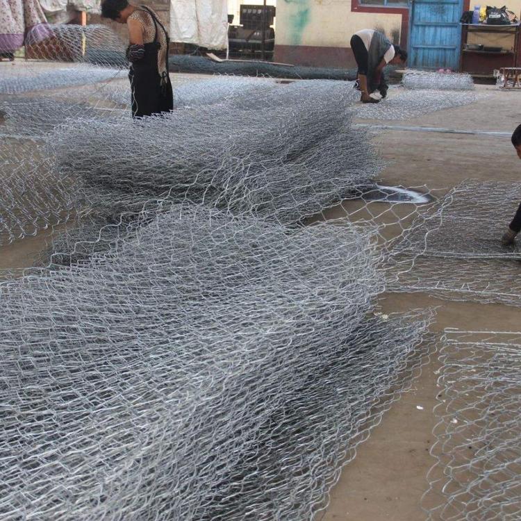 石籠網(wǎng)采用六角擰編而成過程為:原材料選取(盤條)——冷拔/鍍鋅/包塑——機器編織——人工剪切、組裝——產(chǎn)品檢驗——包裝運輸