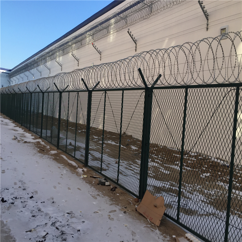 防護(hù)網(wǎng)刀片刺網(wǎng)具有嚇阻、防翻越等效果,材質(zhì)堅硬,高強(qiáng)度,高張力,造型設(shè)計獨(dú)特,不宜觸摸,因而能達(dá)到極好的防護(hù)隔離效果.鋼網(wǎng)墻還具有施工簡便,經(jīng)濟(jì)實用等優(yōu)點(diǎn)