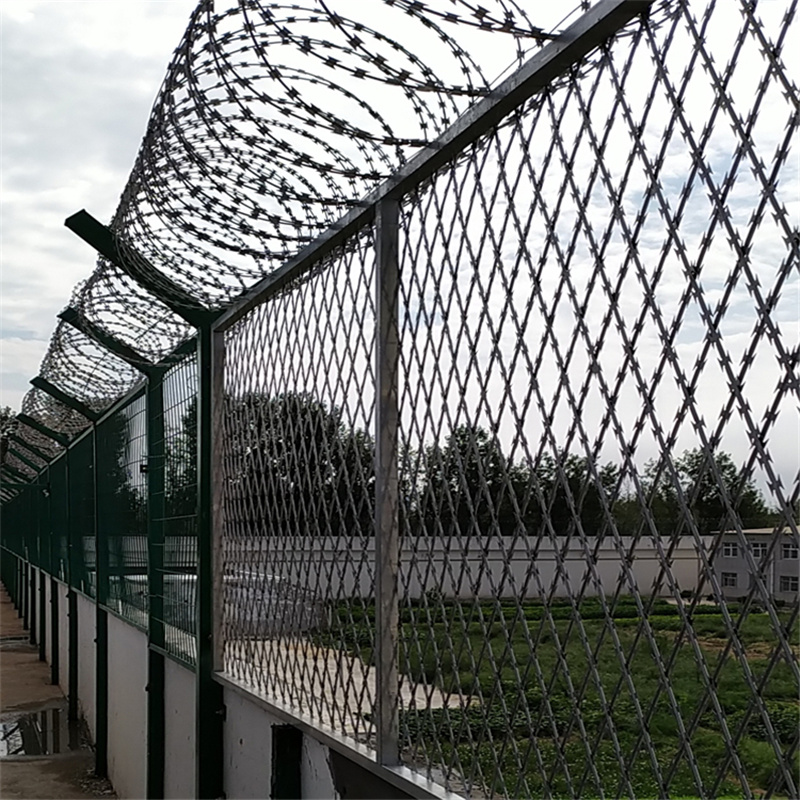 看守所鐵絲網(wǎng)的守護者,恐嚇,防止犯人越獄逃跑起到了至關(guān)重要的作用,所以看守所鐵絲網(wǎng)非常重要的監(jiān)獄安全防護設(shè)施,由焊接鋼網(wǎng)加蛇腹形刀刺網(wǎng)組合而成。產(chǎn)品具有結(jié)構(gòu)新穎、堅固緊密、網(wǎng)面平整、網(wǎng)孔均勻、刀鋒銳利、防攀爬、抗腐蝕性強等特點。建設(shè)于看守所的內(nèi)外墻地面及高墻之上,網(wǎng)墻內(nèi)側(cè)或頂部加裝蛇腹形刀刺網(wǎng),形成一道高不可攀、難以逾越的隔離障礙。配合高壓打擊電網(wǎng)、各種監(jiān)控報警設(shè)備確保監(jiān)獄安全萬無一失。