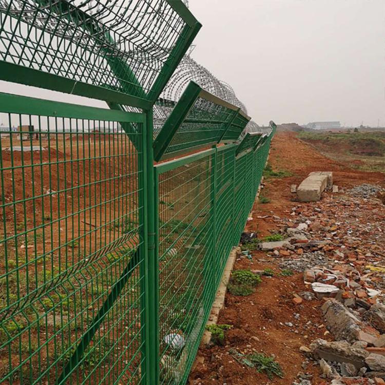 機(jī)場圍界標(biāo)準(zhǔn)@機(jī)場圍界規(guī)格@機(jī)場外圍界網(wǎng)采用鍍鋅材料噴塑或浸塑,或者黑料+熱鍍鋅等,顏色有白色、灰色、草綠、墨綠等多種顏色,具有很好的抗老化、抗曬、耐候等特點。其造型美觀、花色多樣、既起到圍欄的作用,又起到美觀的作用。