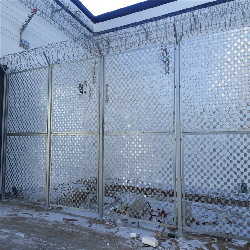 新聞動(dòng)態(tài)監(jiān)獄圍欄網(wǎng)可在平地上安裝,也可以在圍墻上二次安裝。監(jiān)獄圍欄網(wǎng)是為了安全需要,按照嚴(yán)格要求設(shè)計(jì)的圍欄,它也被稱為監(jiān)獄隔離柵欄。它主要使用高強(qiáng)度的鐵絲護(hù)欄網(wǎng)和高質(zhì)量刺繩護(hù)欄,該網(wǎng)由Y柱鐵絲網(wǎng)、安全防盜連接器制成,安全耐用。監(jiān)獄圍欄網(wǎng)的刀片刺網(wǎng)是一種新型的防護(hù)網(wǎng),它由尖銳的鍍鋅鋼板或不銹鋼薄板作為刀片,而鋼絲則作為芯線。監(jiān)獄圍欄網(wǎng)的刀片刺網(wǎng)具有威懾性,抗傾覆防翻越等作用,材料堅(jiān)硬,強(qiáng)度高,張力大,因造型設(shè)計(jì)獨(dú)特,不適合觸摸,因此可以達(dá)到優(yōu)良的保護(hù)隔離效果。監(jiān)獄圍欄網(wǎng)由網(wǎng)片,鐵絲網(wǎng),立柱制成,并通過低碳鋼絲焊接連接。