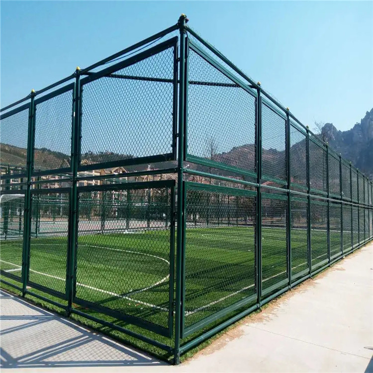 體育場(chǎng)護(hù)欄網(wǎng)一般采用包塑絲,立柱、邊框采用噴塑、浸塑處理。