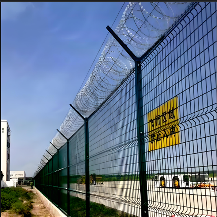 機(jī)場(chǎng)護(hù)欄網(wǎng)又稱作“Y型安全防御護(hù)網(wǎng)”,是由折彎網(wǎng)片,V型支架立柱,加強(qiáng)型焊接片網(wǎng),上面有刀片刺繩(又稱刀刺網(wǎng),刀片護(hù)網(wǎng))安全防盜連接件組成強(qiáng)度和安全防御性級(jí)別很高。被廣泛應(yīng)用在機(jī)場(chǎng),飛行基地等安全場(chǎng)所。機(jī)場(chǎng)護(hù)欄網(wǎng)選材一定要謹(jǐn)慎,市面上存在眾多常見的機(jī)場(chǎng)防護(hù)網(wǎng)、生產(chǎn)原材料等等。它們的構(gòu)成以及防腐方面均存在不同的差別。
