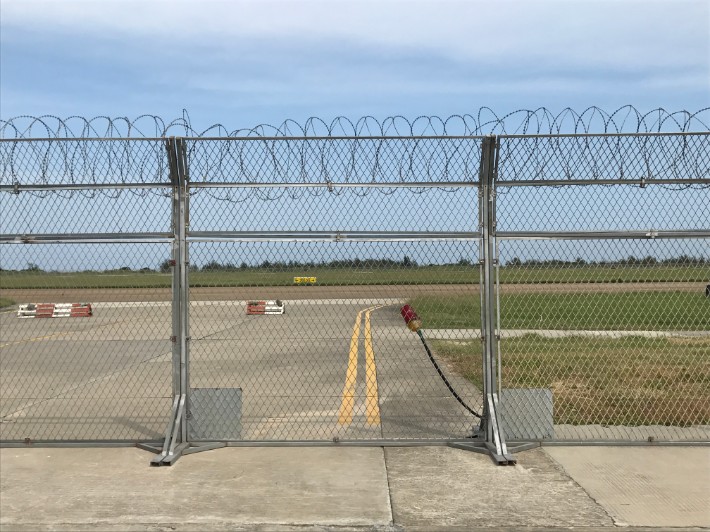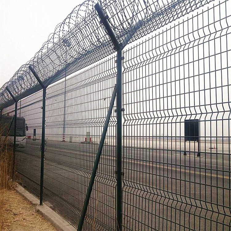 機場隔離網的安裝要求護欄網的整體安裝高度要3米以上,網片與網片間隙不能大于10公分,立柱與網片連接離地部分不能大于5公分,立柱垂直高度為3.5米,每套安裝整齊劃一,機場隔離網上部分采用60直徑的熱鍍鋅刀片刺繩,刺繩的刀片與刀片間隔為20cm。正常的情況下每米出1.2kg左右的刺繩。安裝的同時采用卡扣卡在V型網上面。這樣有利于熱鍍鋅刀片刺繩的穩(wěn)固性能。