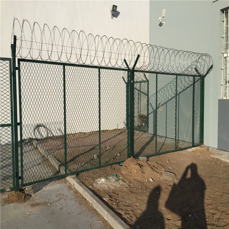 特點(diǎn):如果在監(jiān)獄護(hù)欄網(wǎng)頂部加裝刀片刺絲、刀片刺繩后又很好的增強(qiáng)了安全防護(hù)性能。采用電鍍、熱鍍、噴塑、浸塑等防腐形式,具有很好的抗老化、抗曬、耐候等特點(diǎn)。其產(chǎn)品造型美觀、花色多樣,既起到圍欄作用,又起到美化作用。由于具有安全性高、防攀爬能力好,網(wǎng)片連接方式采用特制SBS緊扣件,有效防止人為的破壞性拆卸,橫向四道折彎加強(qiáng)筋,使網(wǎng)面強(qiáng)度顯著增加。