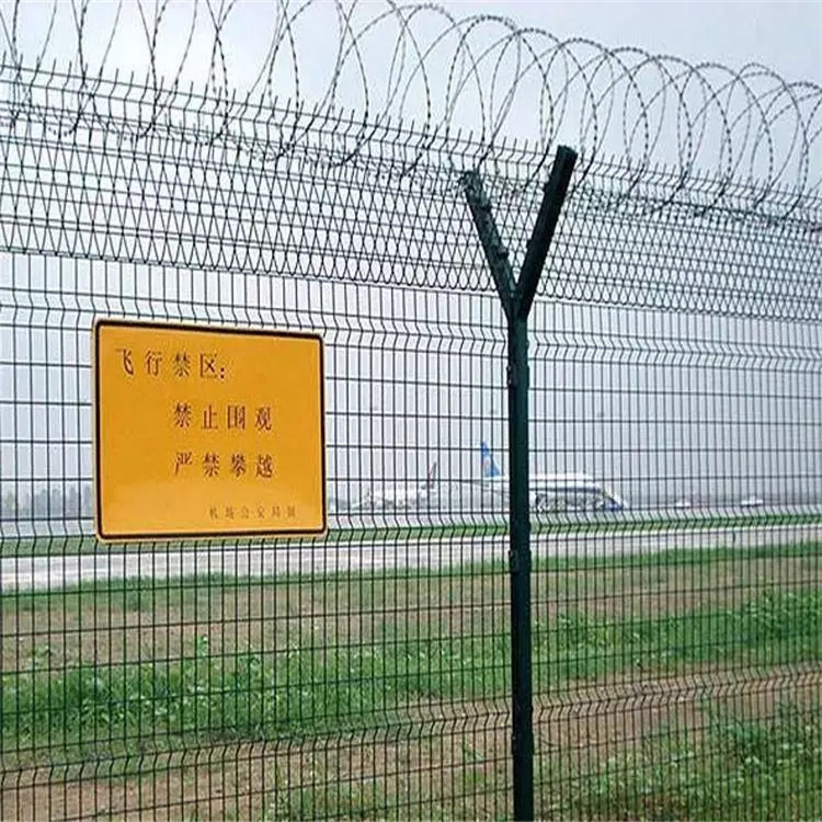 工程案例機場護(hù)欄網(wǎng)又稱作“Y型安全防御護(hù)網(wǎng)”,是由折彎網(wǎng)片,V型支架立柱,加強型焊接片網(wǎng),在防護(hù)網(wǎng)的橫向加裝四道折彎加強筋,在整體成本增加不多的同時,使網(wǎng)面強度和美感顯著增加。Y型安全防御護(hù)網(wǎng)上面有刀片刺繩、安全防盜連接件組成強度和安全防御性級別很高。被廣泛應(yīng)用在機場,基地等安全場所。