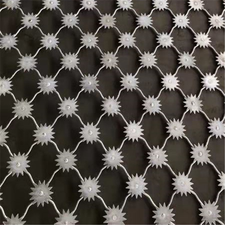 梅花刺片隔離網(wǎng)由美格網(wǎng)和梅花刺片(因其外形類似梅花得名)組合而成的阻絕器材。由于梅花刺片隔離網(wǎng)造形獨(dú)特不易觸摸,因而能達(dá)到很好的防護(hù)隔離效果。既美觀又讓人不寒而粟。起到了很好的阻嚇作用。