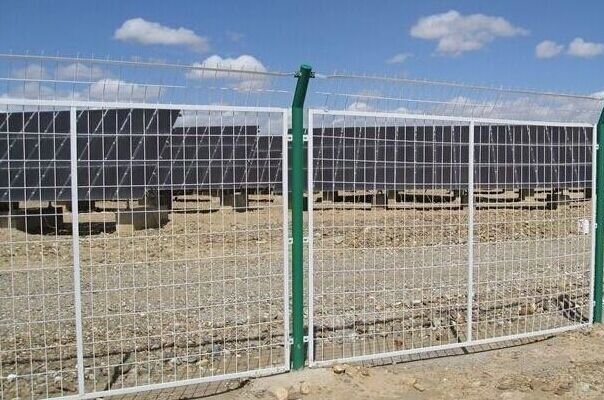 光伏太陽(yáng)能網(wǎng)圍欄是一種新型的圍網(wǎng),采用優(yōu)質(zhì)低碳鋼絲作為原材料,表面浸塑具有日久抗腐蝕、抗紫外線不怕雨淋的特點(diǎn)。這種工藝有無(wú)需模具、加工成本低、成型容易、可加工各種外形等特點(diǎn)被廣范使用。是專門為光伏電站設(shè)計(jì)的防護(hù)設(shè)備,主要是用在光伏電站各個(gè)區(qū)域的防護(hù)和隔離.它有效防止了變電站內(nèi)外的人身安全和變電器等設(shè)備的防盜,是變電站的防護(hù)新產(chǎn)品。具有較長(zhǎng)的使用年限。最常見(jiàn)的形式主要就是邊框隔離防護(hù)網(wǎng).